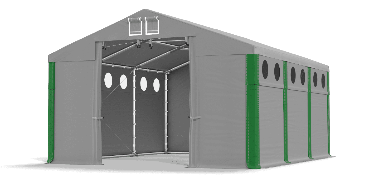 Namioty, w których będziemy przeprowadzać prace warsztatowe, powinny być wyposażone w trudnopalną plandekę ze względów bezpieczeństwa. Jeśli zależy Ci na komforcie pracy, koniecznie wybierz namiot garażowy z systemem podwójnych wywietrzników gwarantujących prawidłową cyrkulację powietrza. Dzięki tej technologii nie dochodzi do efektu sauny i skraplania się wody pod zadaszeniem.