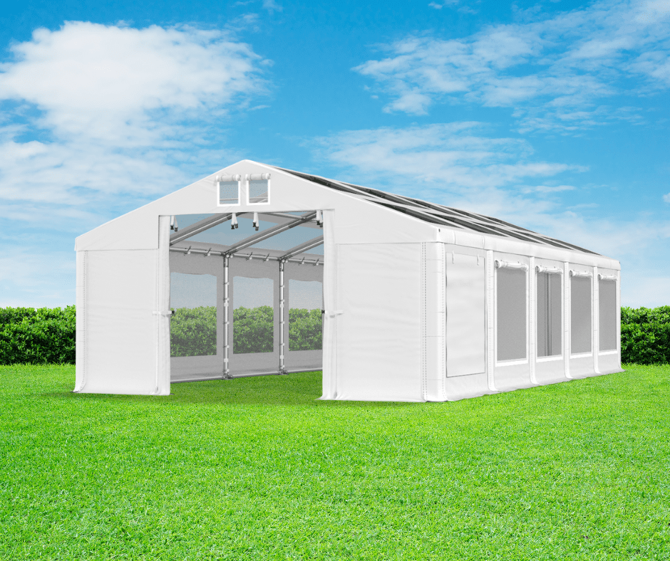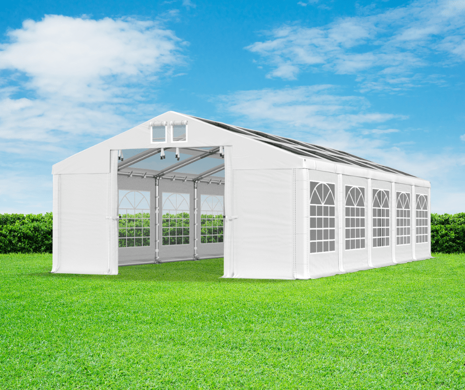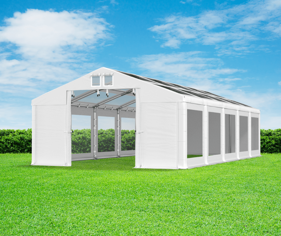 Namiot z transparentnymi bokami i przezroczystym dachem zapewni maksymalne doświetlenie wnętrza. To najlepsza opcja jeśli zależy nam na dużej ilości dziennego światła. Namioty tego typu doskonale sprawdzają się podczas wystaw, targów i wernisaży. Umożliwiają zaprezentowanie towarów i rękodzieła w naturalnym świetle, które nie przekłamuje kolorów. To także doskonały namiot eventowy i imprezowy. Można wykorzystać go podczas rodzinnych spotkań i uroczystych bankietów.