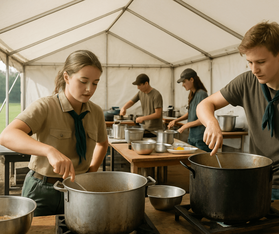 Namioty gastronomiczne i namioty cateringowe, które wykorzystywane będą podczas przygotowywania posiłków na obozach harcerskich, powinny posiadać trudnopalne plandeki. Ognioodporne poszycie zwiększa bezpieczeństwo osób znajdujących się pod zadaszeniem i w jego okolicy.
