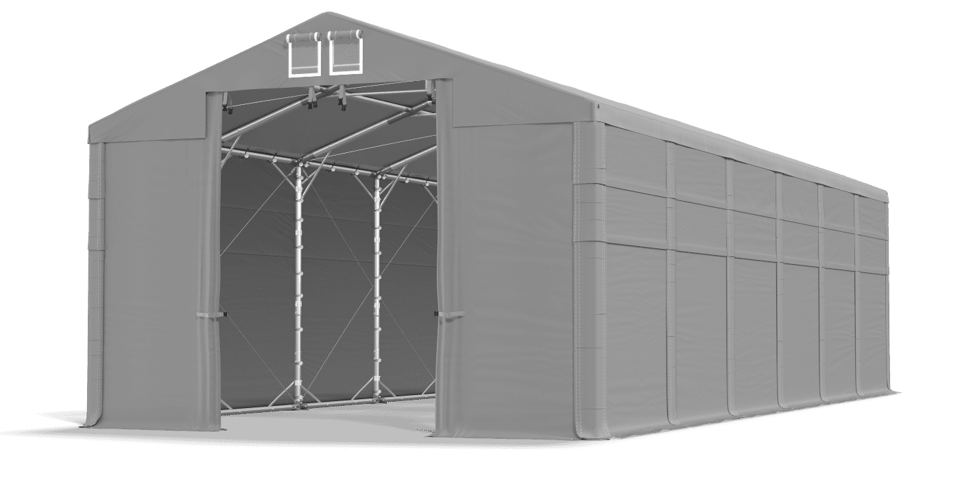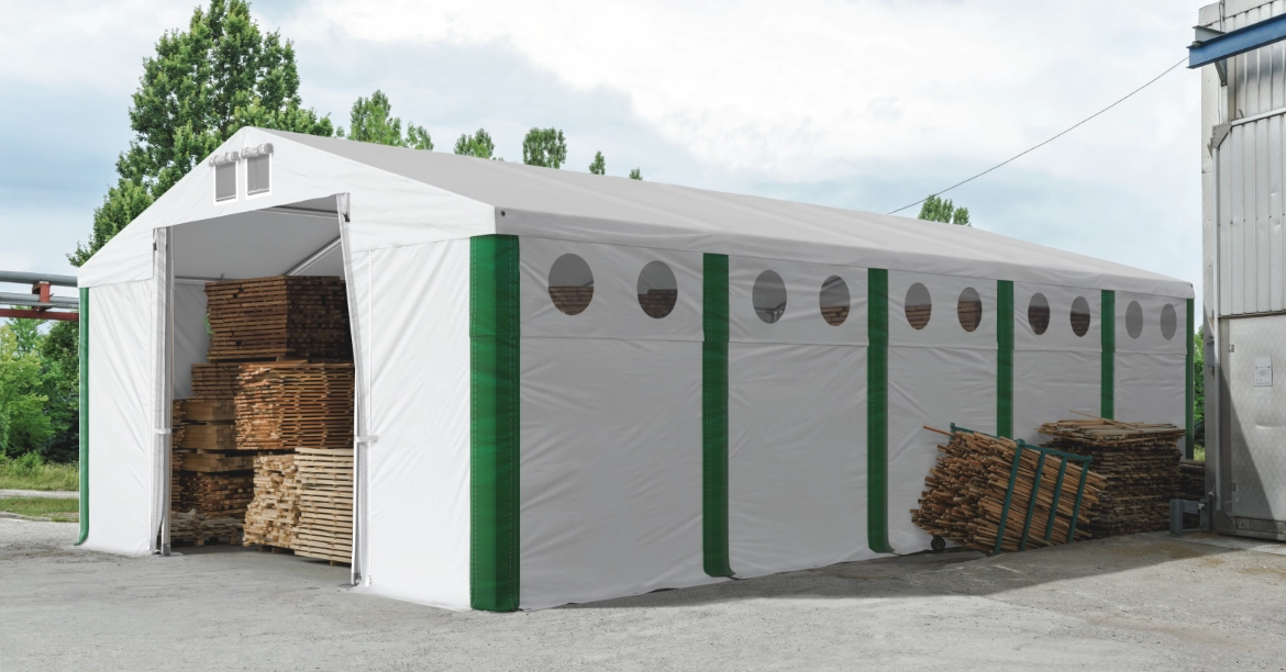 Mocne hale namiotowe w gospodarstwach rolnych zapewniają dodatkową przestrzeń do magazynowania plonów, siana i pasz dla zwierząt. To doskonałe namioty garażowe na maszyny i pojazdy rolnicze. Można stworzyć w nich wiaty pastwiskowe dla bydła i drobiu, a także prowadzić prace związane z przetwórstwem warzyw i owoców.