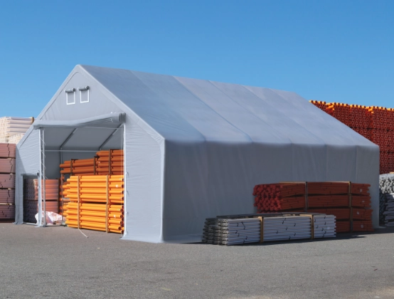 W halach namiotowych można bezpiecznie przechowywać materiały budowlane i surowce takie jak piasek, stal, węgiel, cement, szkło i drewno. Dlatego namioty magazynowe często wykorzystywane są w branży budowlanej. Hale namiotowe używane są także do osłony placów budowy lub stworzenia pomieszczeń socjalnych dla pracowników. W halach magazynowych można trzymać narzędzia, maszyny i pojazdy budowlane.
