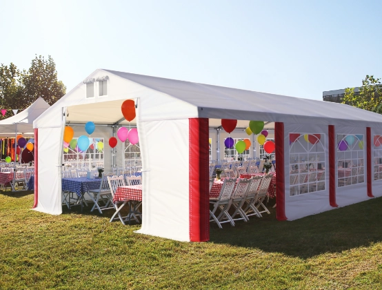 W namiotach eventowych możemy organizować rodzinne i towarzyskie przyjęcia plenerowe. Duże zadaszenia doskonale sprawdzą się podczas hucznych imprez takich jak wesela, chrzciny czy komunie. Mniejszy namiot ogrodowy może być używany podczas celebrowania imienin, urodzin i rocznic. Komfortowa altana namiotowa, która na co dzień jest miejscem relaksu w otoczeniu przyrody z pomocą kilku dekoracji, zmieni się w namiot imprezowy z prawdziwego zdarzenia!