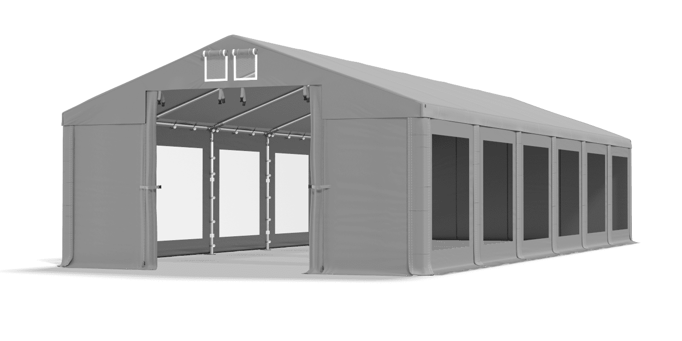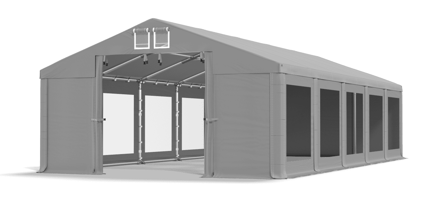 Wszystkim, którym zależy na wielosezonowym zastosowaniu obiektu, rekomendujemy wybór zadaszenia wyposażonego w całoroczną konstrukcję i plandekę z PVC. Poszycia z PVC są trwałe i odporne na uszkodzenia. Ponadto posiadają systemy, które zwiększają komfort i bezpieczeństwo podczas organizacji plenerowych wydarzeń. Stelaże wielosezonowe posiadają liczne wzmocnienia i szerokie stopy namiotowe, co sprawia, że zadaszenie jest bardziej odporne i wytrzymałe.