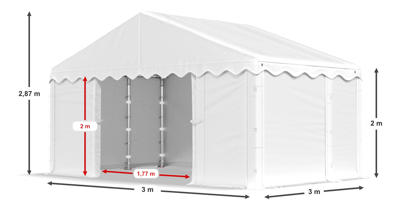 Zadaszenia wyposażone w pełną plandekę z PE to doskonałe, sezonowe namioty magazynowe. Wodoodporne i odporne na promieniowanie UV poszycie nie posiada okien. Dlatego zawartość namiotu garażowego jest niewidoczna z zewnątrz dla osób postronnych. Zadaszenie można wykorzystać również do okresowego garażowania pojazdu, przechowywania mebli i narzędzi ogrodowych lub jako przestrzeń handlową.