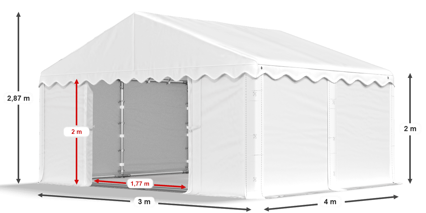 Zadaszenia wyposażone w pełną plandekę z PE to doskonałe, sezonowe namioty magazynowe. Wodoodporne i odporne na promieniowanie UV poszycie nie posiada okien. Dlatego zawartość namiotu garażowego jest niewidoczna z zewnątrz dla osób postronnych. Zadaszenie można wykorzystać również do okresowego garażowania pojazdu, przechowywania mebli i narzędzi ogrodowych lub jako przestrzeń handlową.