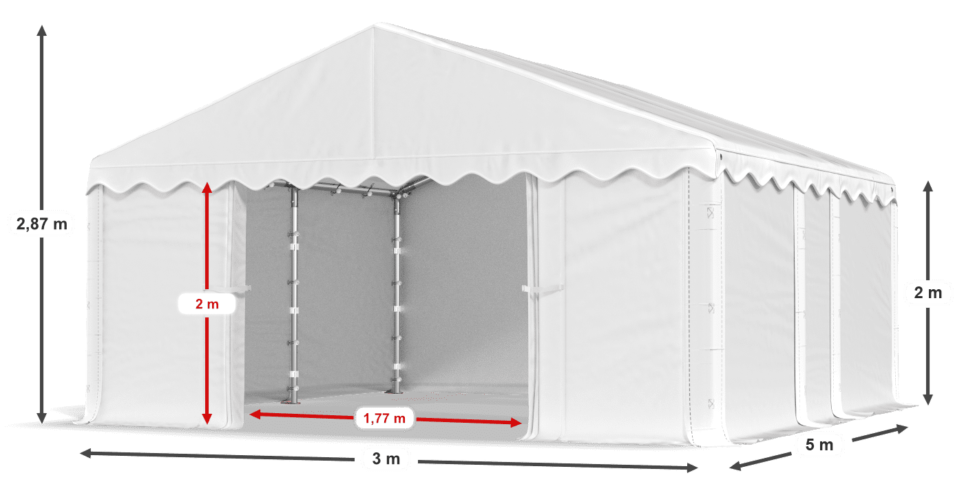 Zadaszenia wyposażone w pełną plandekę z PE to doskonałe, sezonowe namioty magazynowe. Wodoodporne i odporne na promieniowanie UV poszycie nie posiada okien. Dlatego zawartość namiotu garażowego jest niewidoczna z zewnątrz dla osób postronnych. Zadaszenie można wykorzystać również do okresowego garażowania pojazdu, przechowywania mebli i narzędzi ogrodowych lub jako przestrzeń handlową.
