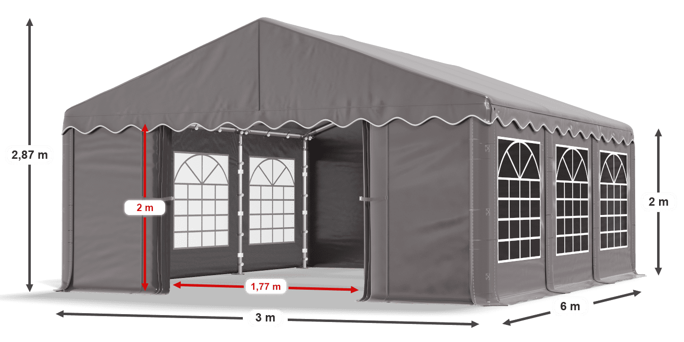 Eleganckie poszycie wyposażone w duże, witrażowe okna doskonale sprawdzi się podczas organizacji rodzinnych przyjęć, imprez firmowych, festynów i gminnych eventów. Plandeka z wodoodpornego PE może być wykorzystywana w okresie wiosenno-letnim. Zadaszenie zapewnia suchą i zacienioną przestrzeń na stoły i bufety. Namiot witrażowy sprawdzi się jako komfortowa altana ogrodowa lub mobilne stoisko handlowe. To także doskonały namiot cateringowy.