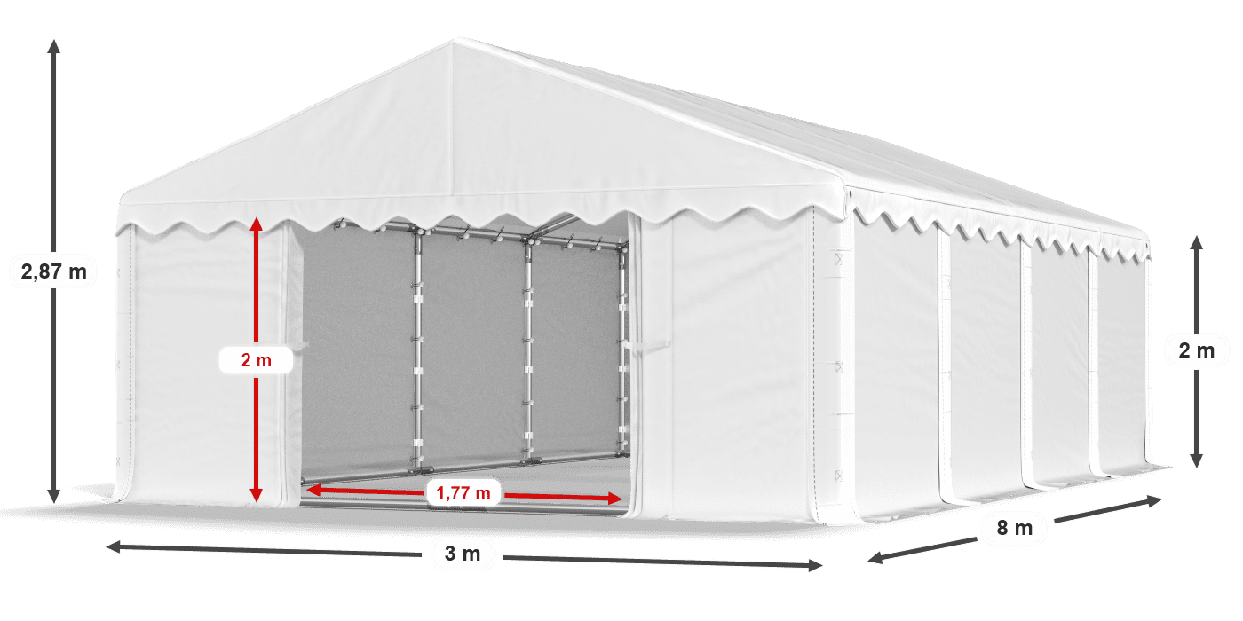 Zadaszenia wyposażone w pełną plandekę z PE to doskonałe, sezonowe namioty magazynowe. Wodoodporne i odporne na promieniowanie UV poszycie nie posiada okien. Dlatego zawartość namiotu garażowego jest niewidoczna z zewnątrz dla osób postronnych. Zadaszenie można wykorzystać również do okresowego garażowania pojazdu, przechowywania mebli i narzędzi ogrodowych lub jako przestrzeń handlową.
