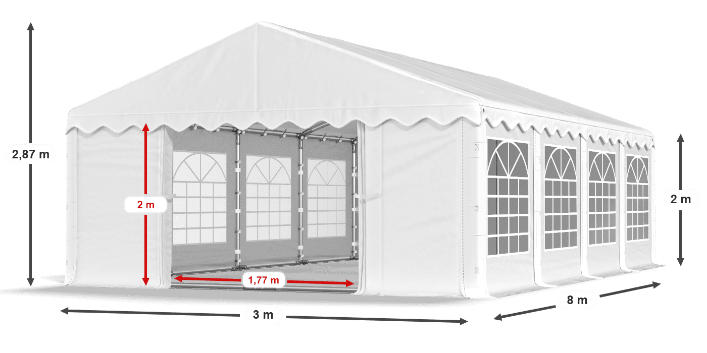 Eleganckie poszycie wyposażone w duże, witrażowe okna doskonale sprawdzi się podczas organizacji rodzinnych przyjęć, imprez firmowych, festynów i gminnych eventów. Plandeka z wodoodpornego PE może być wykorzystywana w okresie wiosenno-letnim. Zadaszenie zapewnia suchą i zacienioną przestrzeń na stoły i bufety. Namiot witrażowy sprawdzi się jako komfortowa altana ogrodowa lub mobilne stoisko handlowe. To także doskonały namiot cateringowy.