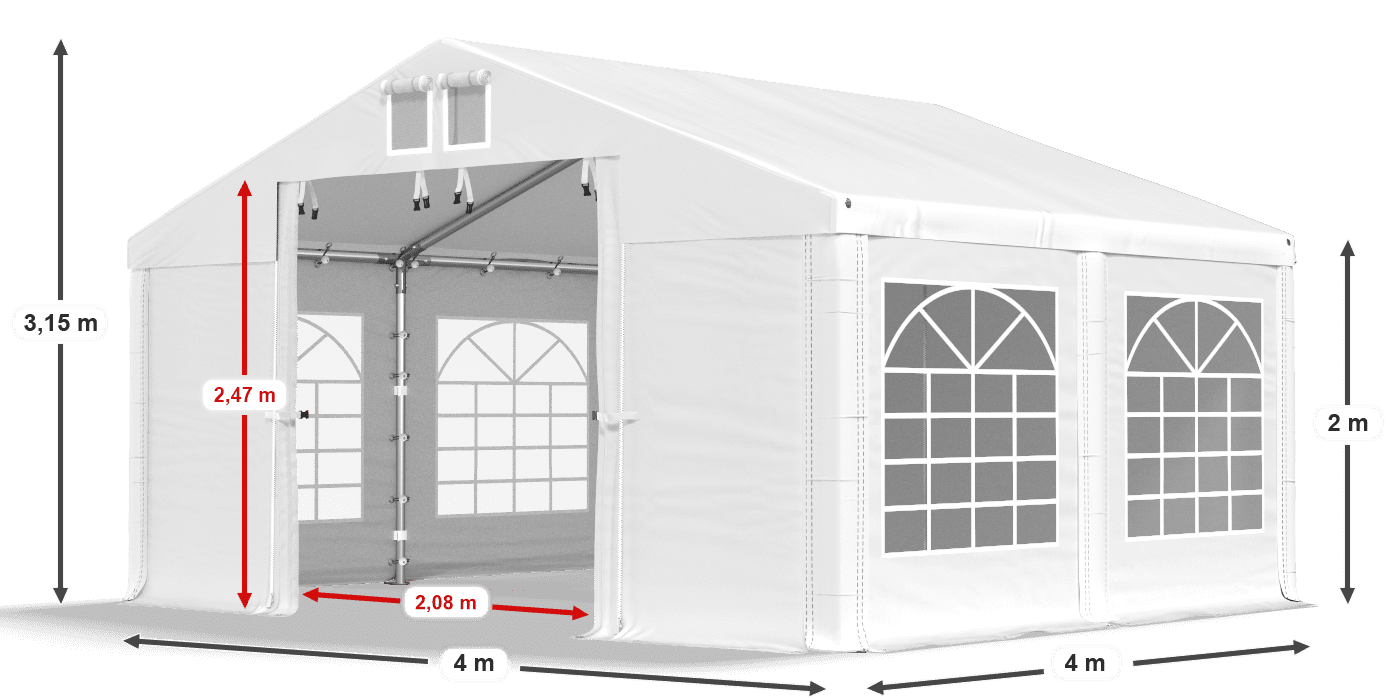 Wodoodporna plandeka z dużymi oknami witrażowymi doskonale sprawdza się podczas organizacji plenerowych wesel, rodzinnych przyjęć i biznesowych eventów. Szczelne poszycie z PVC chroni stoły i bufety przed wilgocią, wiatrem i zanieczyszczeniami. To także elegancki namiot ogrodowy i namiot cateringowy. Witrażowe poszycie umożliwia estetyczną ekspozycję towarów, dlatego wykorzystywane jest w namiotach handlowych i wystawowych.