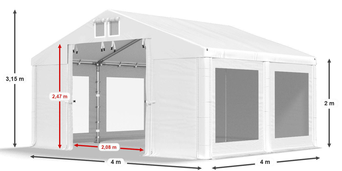 Poszycie z transparentnymi bokami gwarantuje doskonałe doświetlenie wnętrza i umożliwia podziwianie naturalnego krajobrazu podczas przebywania pod namiotem imprezowym. Plandeka wykonana jest z wodoodpornego i odpornego na promieniowanie UV materiału PVC. Dzięki temu gwarantuje suchą i zacienioną przestrzeń na stoły i bufety. Wykorzystywana jest podczas imprez plenerowych oraz jako przestrzeń handlowa. Estetyczne poszycie zwraca uwagę potencjalnych klientów i umożliwia wyeksponowanie towaru.