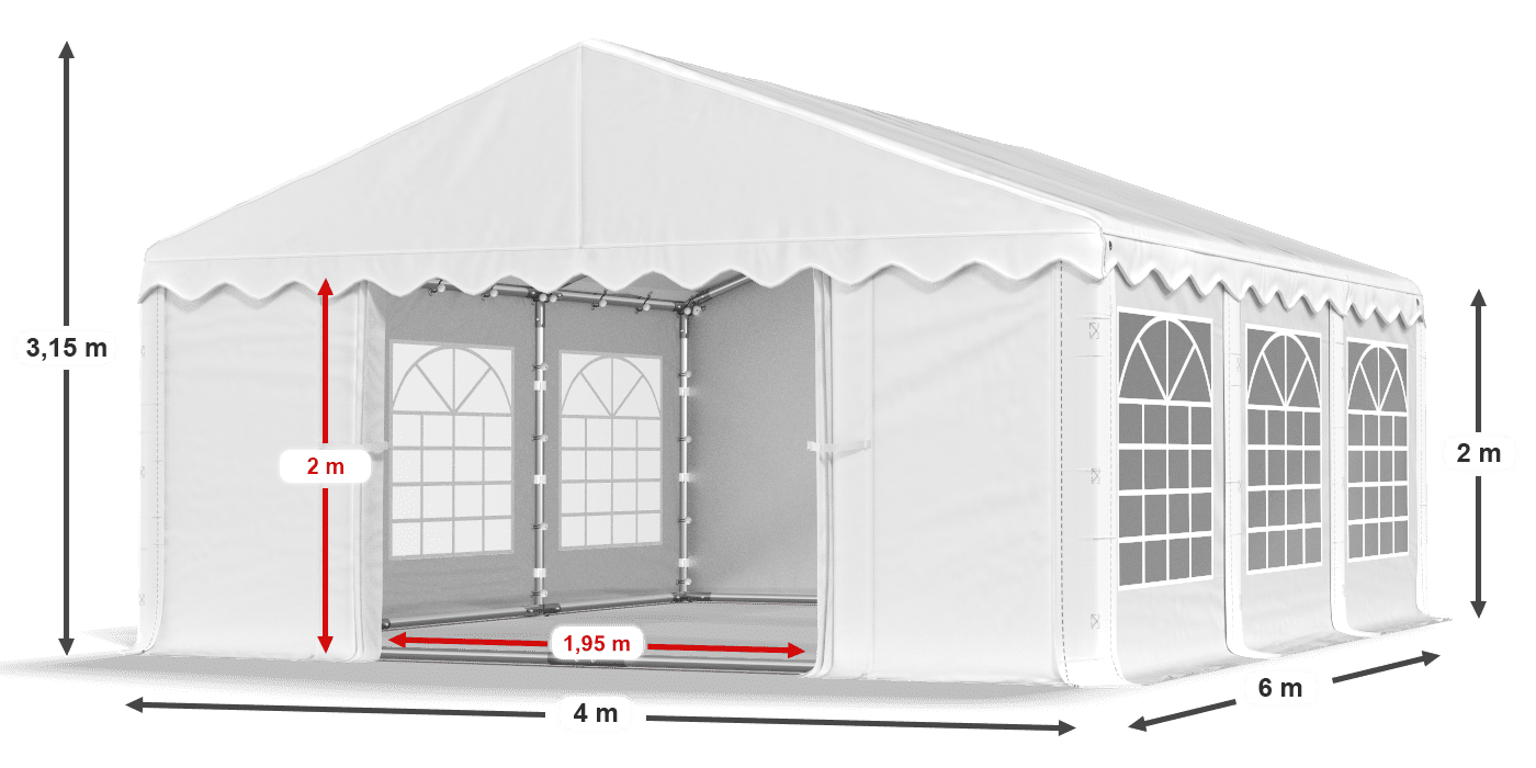 Eleganckie poszycie wyposażone w duże, witrażowe okna doskonale sprawdzi się podczas organizacji rodzinnych przyjęć, imprez firmowych, festynów i gminnych eventów. Plandeka z wodoodpornego PE może być wykorzystywana w okresie wiosenno-letnim. Zadaszenie zapewnia suchą i zacienioną przestrzeń na stoły i bufety. Namiot witrażowy sprawdzi się jako komfortowa altana ogrodowa lub mobilne stoisko handlowe. To także doskonały namiot cateringowy.