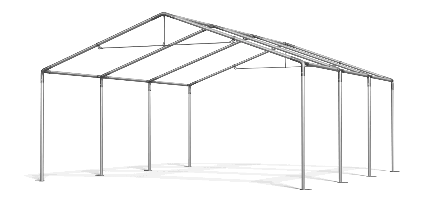 Sezonowy stelaż SUMMER FLOOR wykonany jest z ocynkowanej stali najwyższej jakości. Dodatkowa konstrukcja podłogowa wzmacnia namiot i sprawia, że jest bardziej wytrzymały.