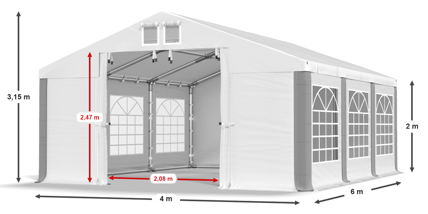 Wodoodporna plandeka z dużymi oknami witrażowymi doskonale sprawdza się podczas organizacji plenerowych wesel, rodzinnych przyjęć i biznesowych eventów. Szczelne poszycie z PVC chroni stoły i bufety przed wilgocią, wiatrem i zanieczyszczeniami. To także elegancki namiot ogrodowy i namiot cateringowy. Witrażowe poszycie umożliwia estetyczną ekspozycję towarów, dlatego wykorzystywane jest w namiotach handlowych i wystawowych.