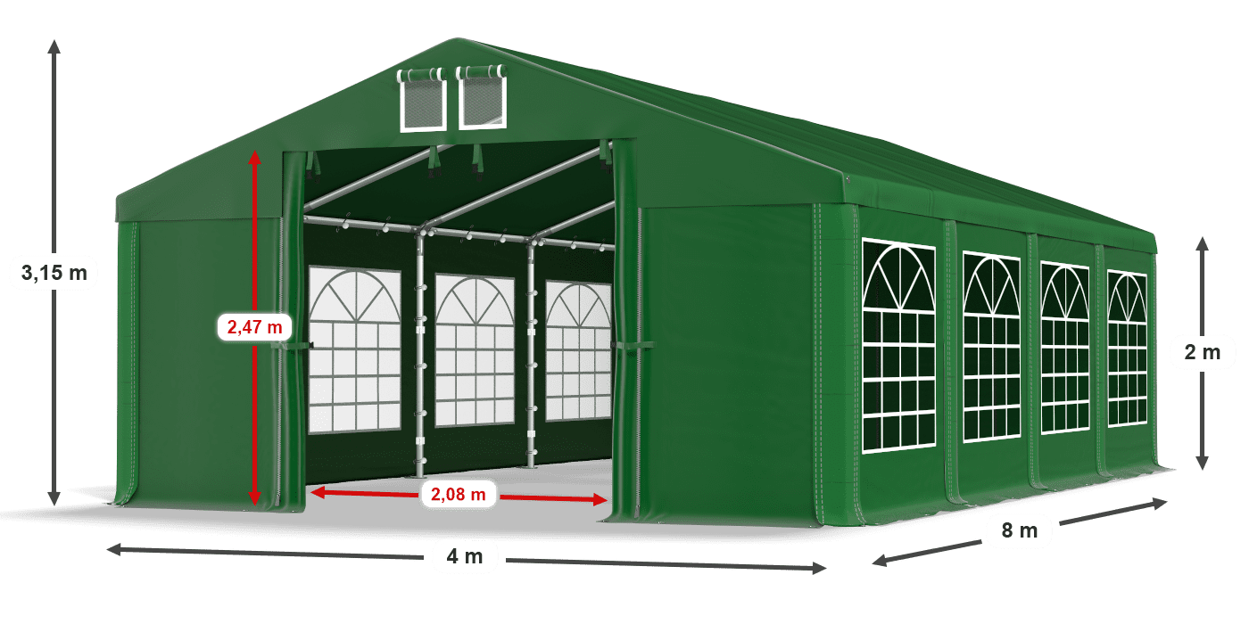 Wodoodporna plandeka z dużymi oknami witrażowymi doskonale sprawdza się podczas organizacji plenerowych wesel, rodzinnych przyjęć i biznesowych eventów. Szczelne poszycie z PVC chroni stoły i bufety przed wilgocią, wiatrem i zanieczyszczeniami. To także elegancki namiot ogrodowy i namiot cateringowy. Witrażowe poszycie umożliwia estetyczną ekspozycję towarów, dlatego wykorzystywane jest w namiotach handlowych i wystawowych.