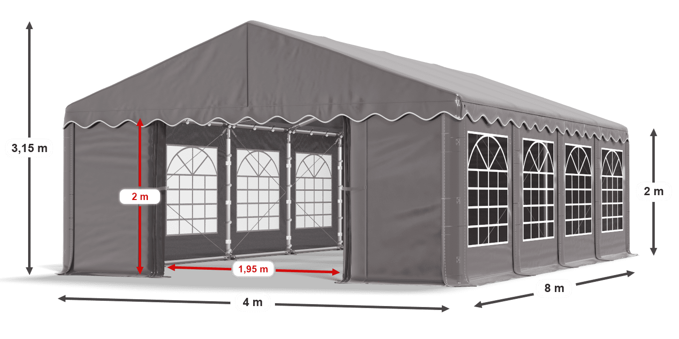 Eleganckie poszycie wyposażone w duże, witrażowe okna doskonale sprawdzi się podczas organizacji rodzinnych przyjęć, imprez firmowych, festynów i gminnych eventów. Plandeka z wodoodpornego PE może być wykorzystywana w okresie wiosenno-letnim. Zadaszenie zapewnia suchą i zacienioną przestrzeń na stoły i bufety. Namiot witrażowy sprawdzi się jako komfortowa altana ogrodowa lub mobilne stoisko handlowe. To także doskonały namiot cateringowy.