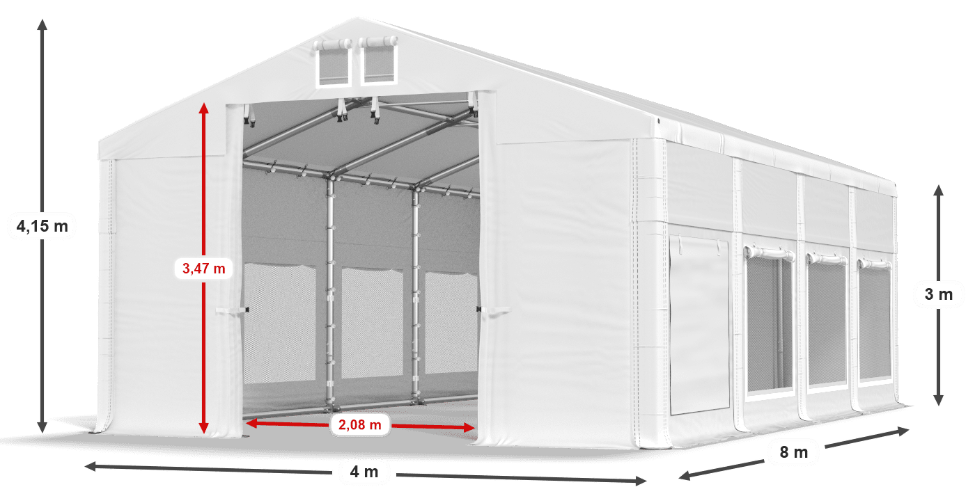 Plandeka z oknami wyposażonymi w moskitiery zapewnia przepływ świeżego powietrza w upalne dni. Poszycie jest odporne na wilgoć i promieniowanie UV, dlatego może być wykorzystywane podczas organizacji plenerowych przyjęć rodzinnych i firmowych. Moskitiery są niezwykle przewiewne, a jednocześnie chronią stoły i bufety przed latającymi owadami. W razie ochłodzenia okna możemy zasłonić roletami, które uszczelnią namiot imprezowy.