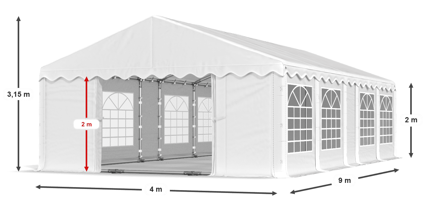 Eleganckie poszycie wyposażone w duże, witrażowe okna doskonale sprawdzi się podczas organizacji rodzinnych przyjęć, imprez firmowych, festynów i gminnych eventów. Plandeka z wodoodpornego PE może być wykorzystywana w okresie wiosenno-letnim. Zadaszenie zapewnia suchą i zacienioną przestrzeń na stoły i bufety. Namiot witrażowy sprawdzi się jako komfortowa altana ogrodowa lub mobilne stoisko handlowe. To także doskonały namiot cateringowy.