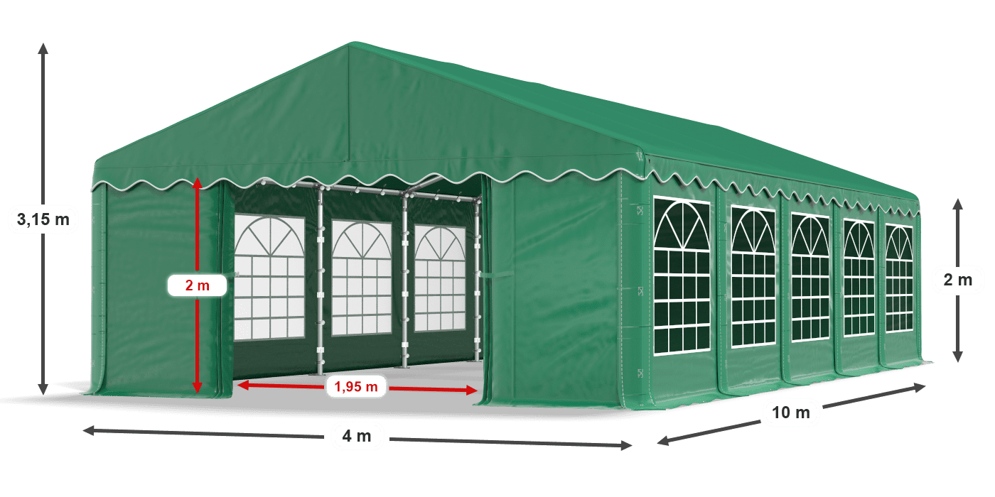 Eleganckie poszycie wyposażone w duże, witrażowe okna doskonale sprawdzi się podczas organizacji rodzinnych przyjęć, imprez firmowych, festynów i gminnych eventów. Plandeka z wodoodpornego PE może być wykorzystywana w okresie wiosenno-letnim. Zadaszenie zapewnia suchą i zacienioną przestrzeń na stoły i bufety. Namiot witrażowy sprawdzi się jako komfortowa altana ogrodowa lub mobilne stoisko handlowe. To także doskonały namiot cateringowy.