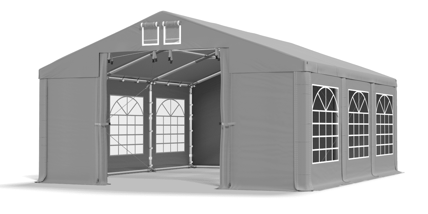 Namiot tego typu jest zbudowany z segmentowego dachu oraz ze ścianek wyposażonych w duże okna witrażowe. Jest to świetny wybór, gdy często organizujemy imprezy na różną ilość gości. Wtedy raz możemy ustawić mniejszy namiot lub dodać więcej segmentów i stworzyć większą przestrzeń.