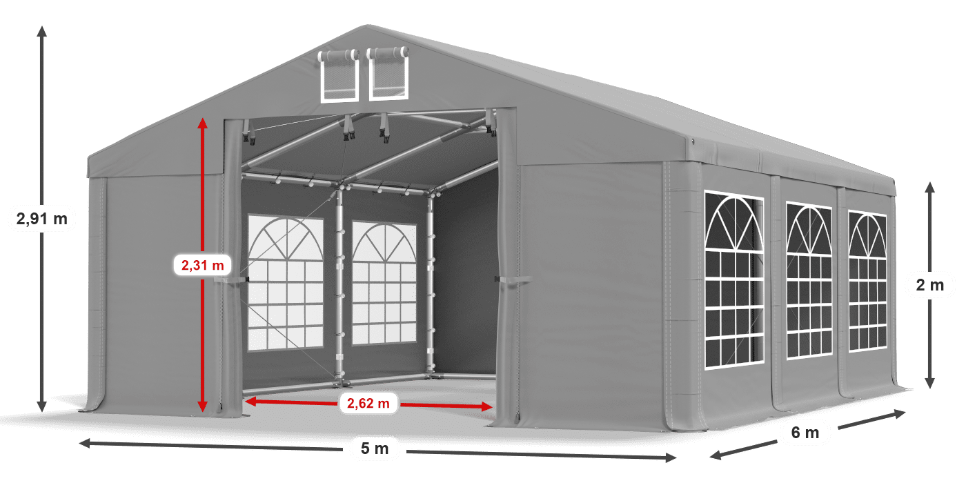 Wysokości w namiotach magazynowych oraz imprezowych mogą być szybko zmienione, a to dzięki modułowej konstrukcji, która pozwala na podniesienie namiotu o 0,5m lub o 1m. Najniższa możliwa wysokość ściany bocznej to 2m, a najwyższa to 4m.
