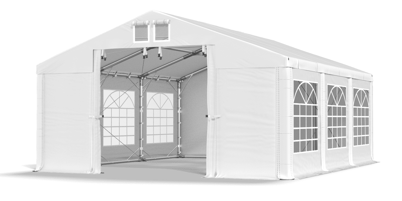 Możesz dopasować ścianki boczne, w zależności od potrzeb. Istnieje możliwość połączenia w jednym namiocie ścianek pełnych, ze ścianki z oknami witrażowymi, czy ścianami transparentnymi.