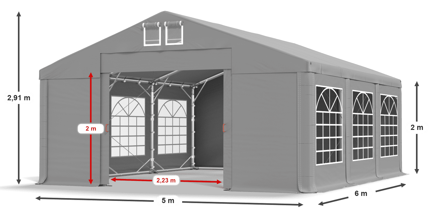 Wysokości w namiotach magazynowych oraz imprezowych mogą być szybko zmienione, a to dzięki modułowej konstrukcji, która pozwala na podniesienie namiotu o 0,5m lub o 1m. Najniższa możliwa wysokość ściany bocznej to 2m, a najwyższa to 4m.