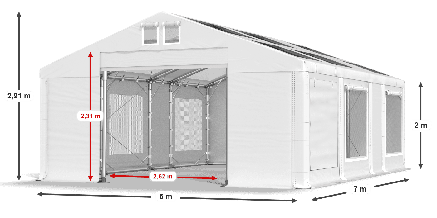 Wysokości w namiotach magazynowych oraz imprezowych mogą być szybko zmienione, a to dzięki modułowej konstrukcji, która pozwala na podniesienie namiotu o 0,5m lub o 1m. Najniższa możliwa wysokość ściany bocznej to 2m, a najwyższa to 4m.