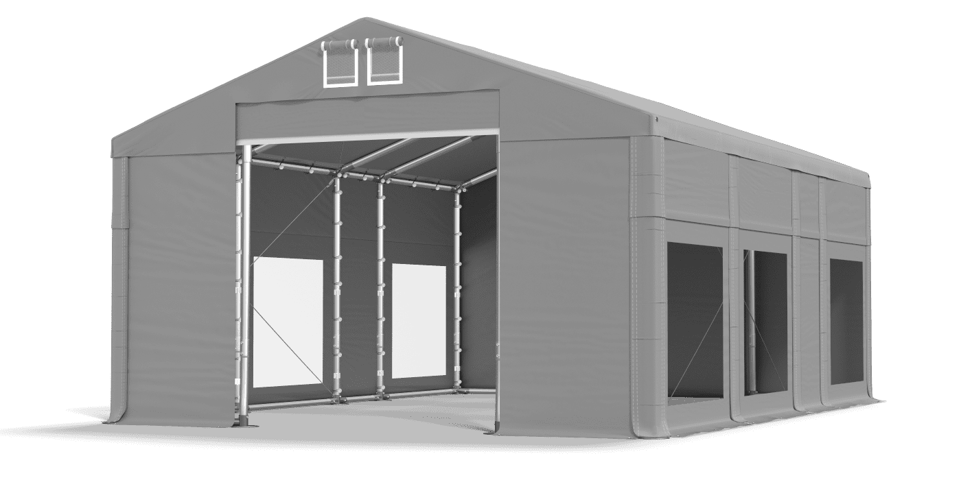 Wysokości w namiotach magazynowych oraz imprezowych mogą być szybko zmienione, a to dzięki modułowej konstrukcji, która pozwala na podniesienie namiotu o 0,5m lub o 1m. Najniższa możliwa wysokość ściany bocznej to 2m, a najwyższa to 4m.