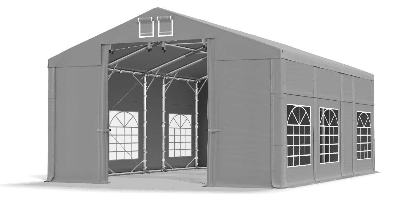 Namiot tego typu jest zbudowany z segmentowego dachu oraz ze ścianek wyposażonych w duże okna witrażowe. Jest to świetny wybór, gdy często organizujemy imprezy na różną ilość gości. Wtedy raz możemy ustawić mniejszy namiot lub dodać więcej segmentów i stworzyć większą przestrzeń.