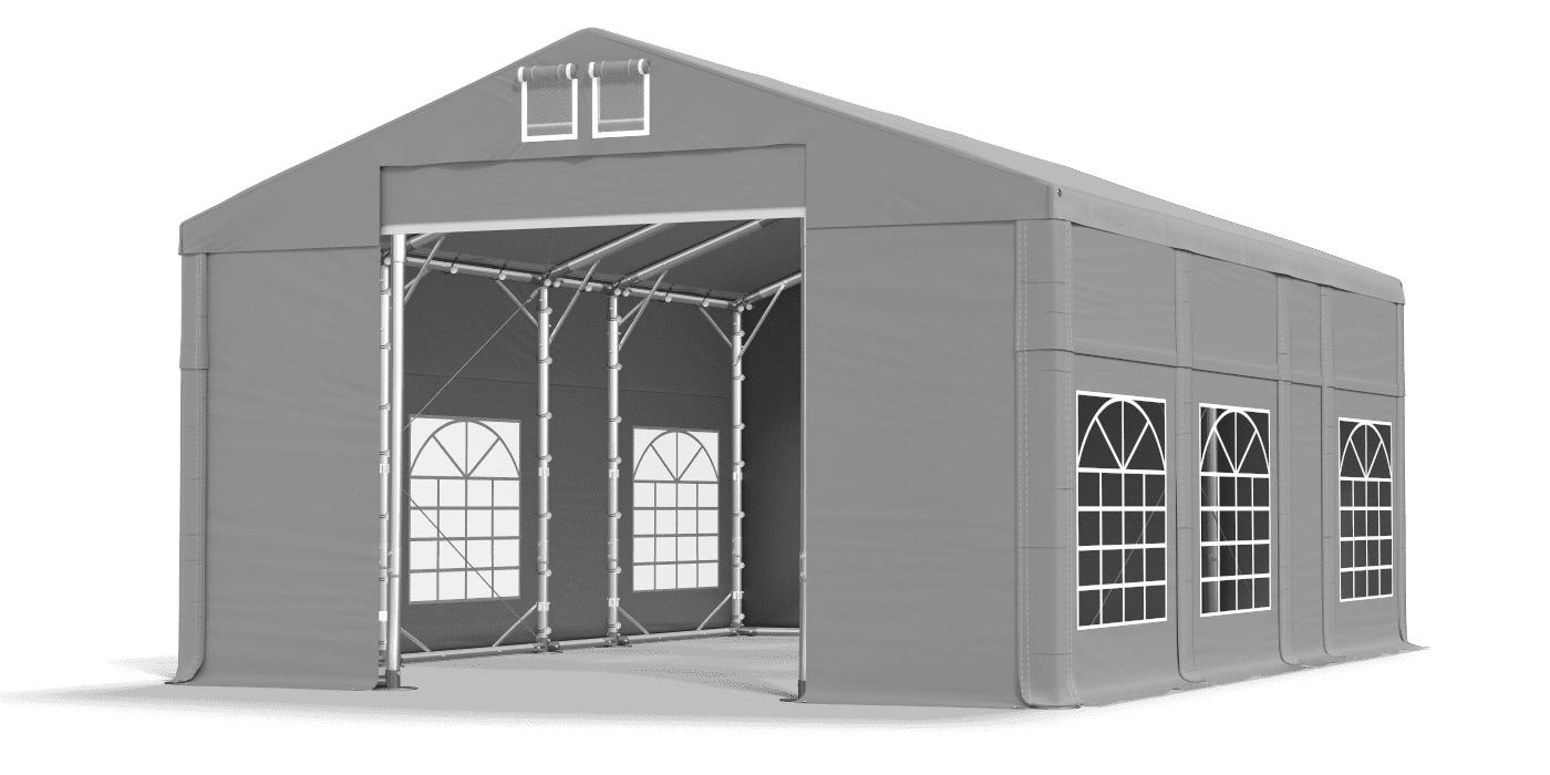 Namiot tego typu jest zbudowany z segmentowego dachu oraz ze ścianek wyposażonych w duże okna witrażowe. Jest to świetny wybór, gdy często organizujemy imprezy na różną ilość gości. Wtedy raz możemy ustawić mniejszy namiot lub dodać więcej segmentów i stworzyć większą przestrzeń.