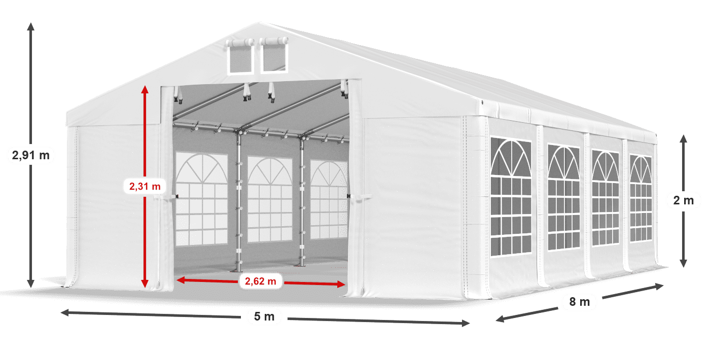 Namiot tego typu jest zbudowany z segmentowego dachu oraz ze ścianek wyposażonych w duże okna witrażowe. Jest to świetny wybór, gdy często organizujemy imprezy na różną ilość gości. Wtedy raz możemy ustawić mniejszy namiot lub dodać więcej segmentów i stworzyć większą przestrzeń.