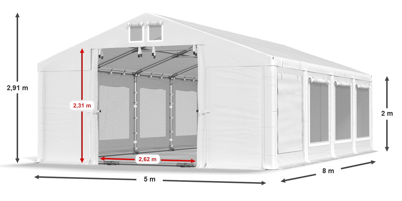 Plandeka z oknami wyposażonymi w moskitiery zapewnia przepływ świeżego powietrza w upalne dni. Poszycie jest odporne na wilgoć i promieniowanie UV, dlatego może być wykorzystywane podczas organizacji plenerowych przyjęć rodzinnych i firmowych. Moskitiery są niezwykle przewiewne, a jednocześnie chronią stoły i bufety przed latającymi owadami. W razie ochłodzenia okna możemy zasłonić roletami, które uszczelnią namiot imprezowy.