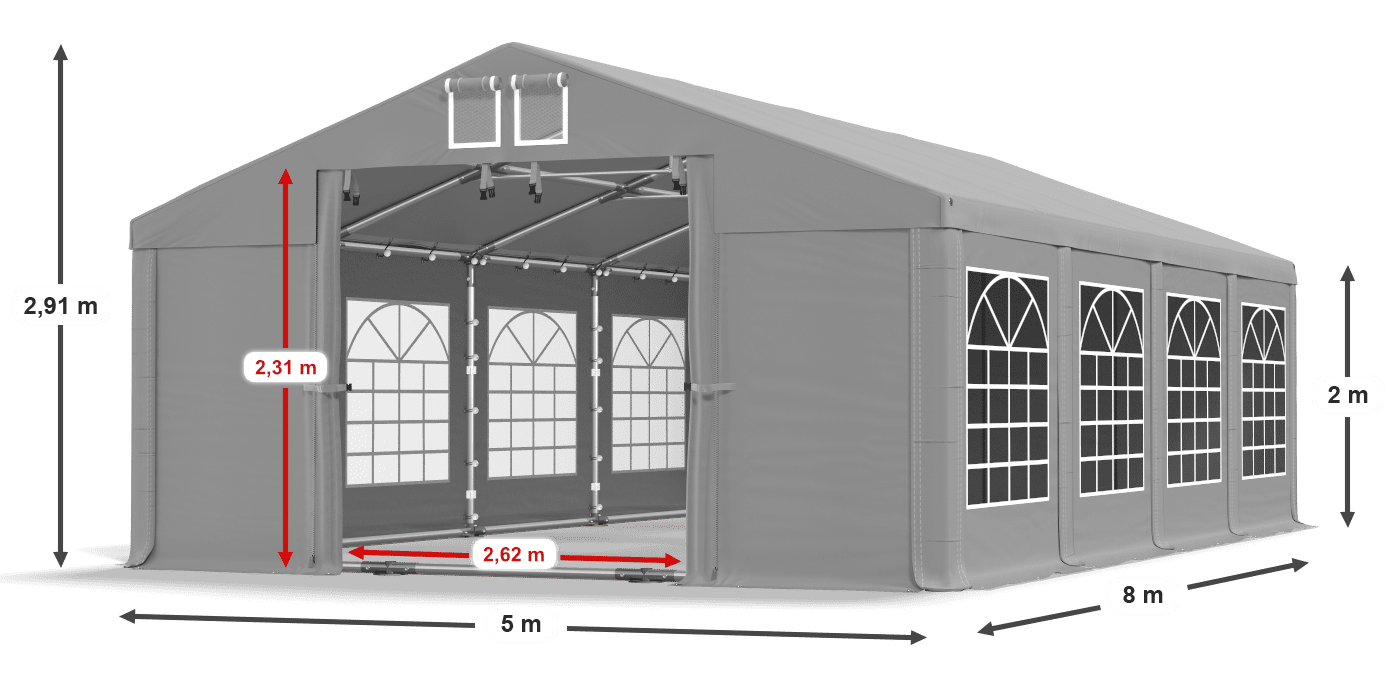 7. Ściany boczne SD PVC 2 x 2 m (polichlorek winylu) ok. 500 g/m2 - Okna witrażowe 140 x 130 cm