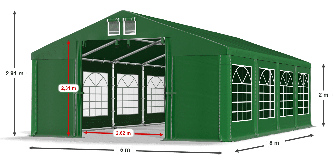 Wysokości w namiotach magazynowych oraz imprezowych mogą być szybko zmienione, a to dzięki modułowej konstrukcji, która pozwala na podniesienie namiotu o 0,5m lub o 1m. Najniższa możliwa wysokość ściany bocznej to 2m, a najwyższa to 4m.