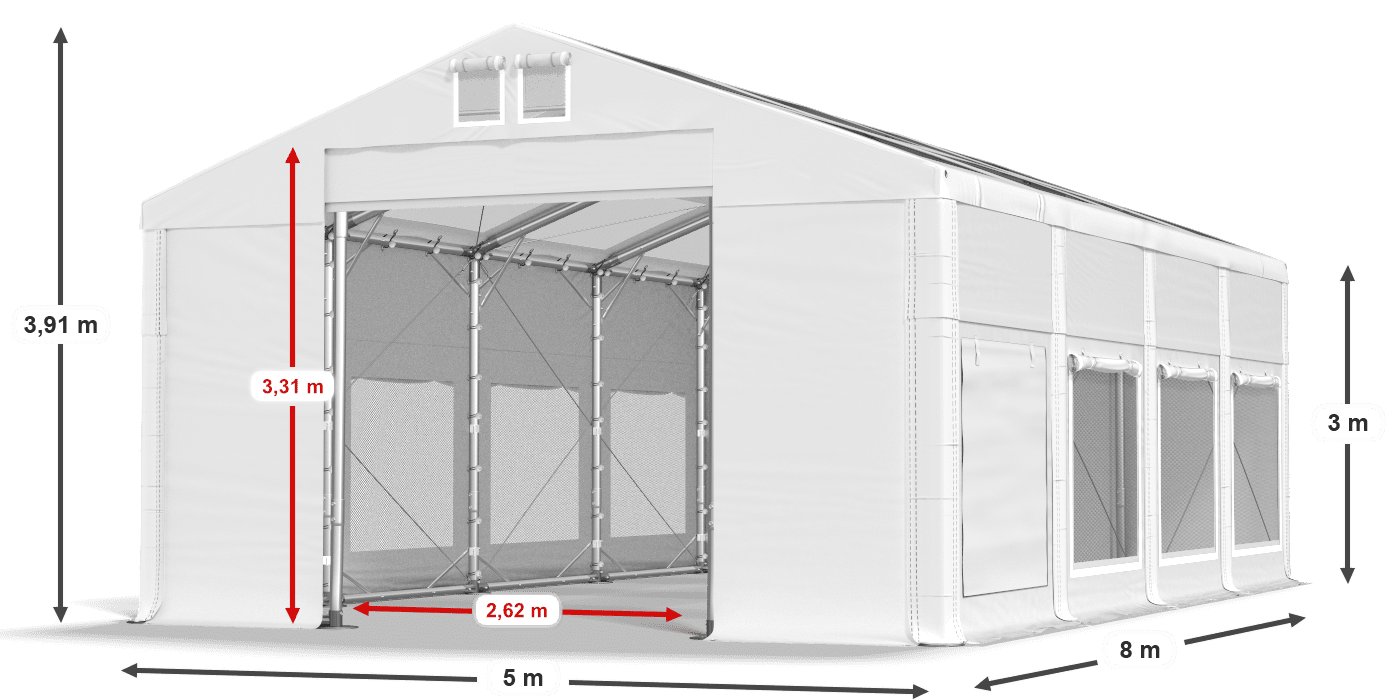 Wysokości w namiotach magazynowych oraz imprezowych mogą być szybko zmienione, a to dzięki modułowej konstrukcji, która pozwala na podniesienie namiotu o 0,5m lub o 1m. Najniższa możliwa wysokość ściany bocznej to 2m, a najwyższa to 4m.