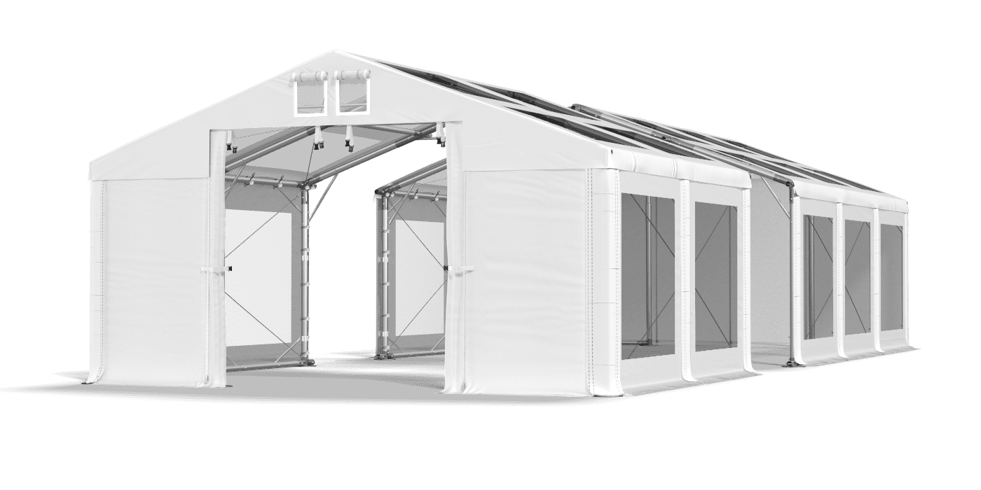 Ten model gwarantuje maksymalne doświetlenie wnętrza. W dachu, jak i na bokach znajdują się duże, przezroczyste okna, przez które wpada światło słoneczne. Taki namiot wygląda oryginalnie i przyciąga gości do ogródków utworzonych przy kawiarniach i restauracjach.