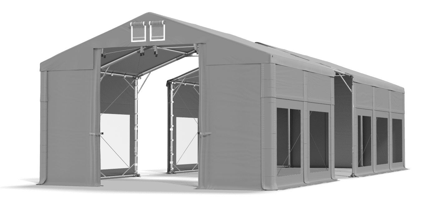 Wysokości w namiotach magazynowych oraz imprezowych mogą być szybko zmienione, a to dzięki modułowej konstrukcji, która pozwala na podniesienie namiotu o 0,5m lub o 1m. Najniższa możliwa wysokość ściany bocznej to 2m, a najwyższa to 4m.