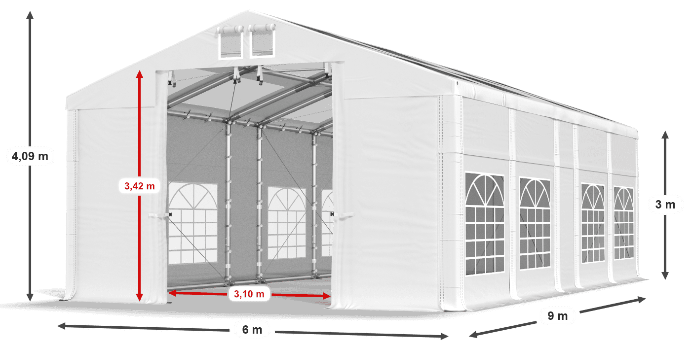Wysokości w namiotach magazynowych oraz imprezowych mogą być szybko zmienione, a to dzięki modułowej konstrukcji, która pozwala na podniesienie namiotu o 0,5m lub o 1m. Najniższa możliwa wysokość ściany bocznej to 2m, a najwyższa to 4m.