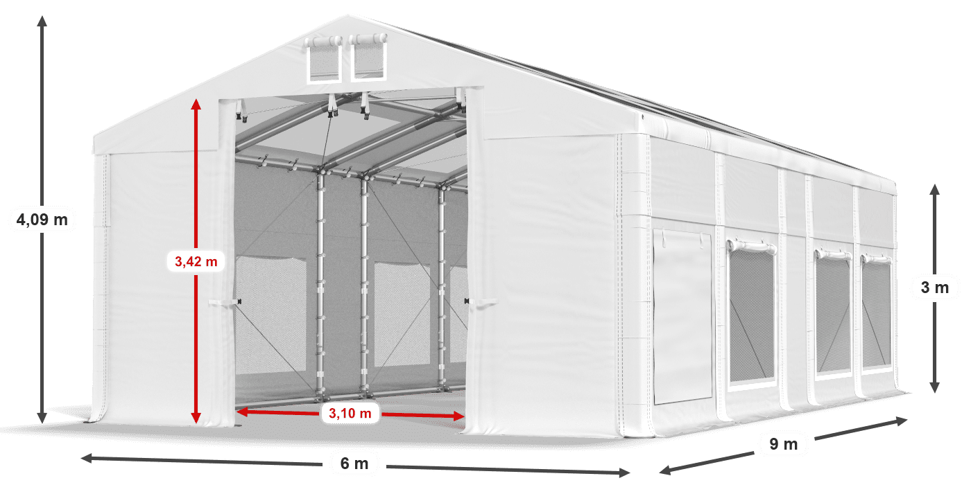 Każda ze ścian jest wyposażona we wbudowaną siatkę przepuszczającą powietrze. Nad każdym z takich siateczkowych okien znajduje się roleta, która na całej długości posiada rzepy. Rzepy te, po rozwinięciu rolety idealnie przylegają do ścianki, tworząc zamkniętą całość. Dlatego namioty z takimi ściankami można wykorzystywać w dwojaki sposób - i jako namioty imprezowe czy ogrodowe, ustawiając w środku stoliki i krzesła, i jako składziki do magazynowania. Dodatkowo w dachu znajdują się bardzo duże, całkowicie przezroczyste okna, dzięki czemu światło słoneczne w pełni doświetla namiot.