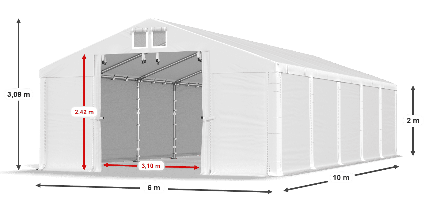 Trwała, trudnopalna plandeka z PVC zapewnia bezpieczne warunki do przechowywania materiałów budowalnych, towarów handlowych, pojazdów i maszyn rolniczych. Pełne poszycie bez okien jest wyjątkowo szczelne, wodoodporne i nie przepuszcza dziennego światła. Wnętrze namiotu magazynowego jest niewidoczne dla osób postronnych. To doskonały namiot garażowy i hala przemysłowa. Plandeka posiada system szybkiej zmiany długości Multi-size.
