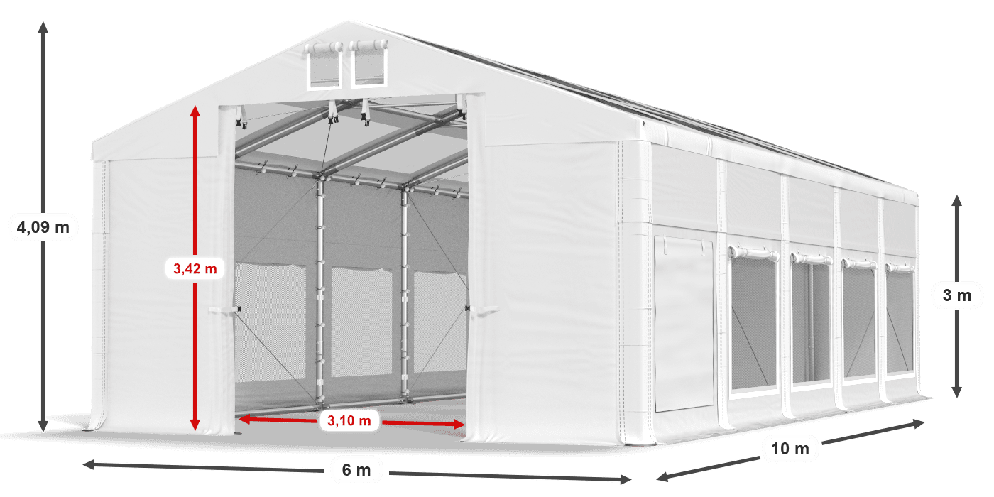 Wysokości w namiotach magazynowych oraz imprezowych mogą być szybko zmienione, a to dzięki modułowej konstrukcji, która pozwala na podniesienie namiotu o 0,5m lub o 1m. Najniższa możliwa wysokość ściany bocznej to 2m, a najwyższa to 4m.