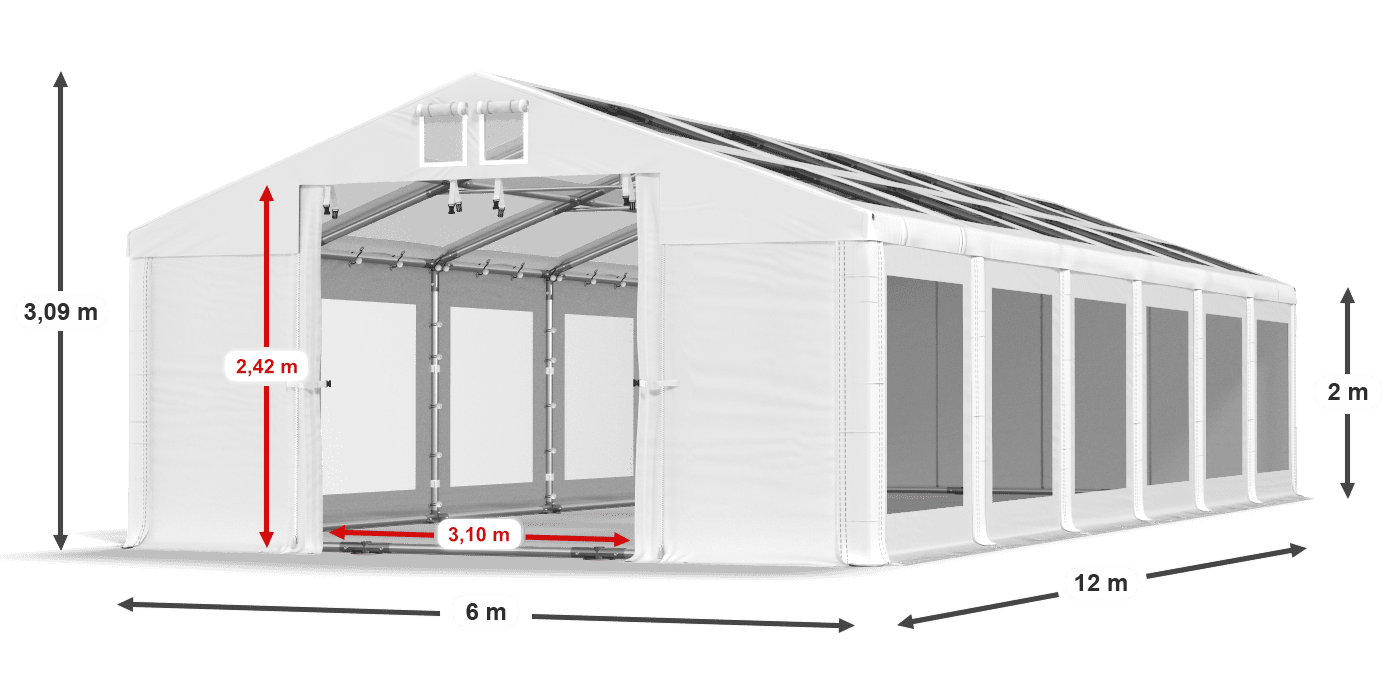 Poszycie wyposażone jest w transparentne boki i dach. Dzięki temu gwarantuje pełne doświetlenie namiotu eventowego. Zadaszenie może być używane w handlu, ponieważ umożliwia estetyczne wyeksponowanie towarów. Plandeka wykonana jest z PVC o wysokiej gramaturze. Dzięki temu chroni stoły i bufety przed wiatrem, wilgocią i zanieczyszczeniami z zewnątrz. To doskonały namiot ogrodowy i namiot wystawowy. Poszycie zostało wyposażone w system łatwej zmiany długości Multi-size.