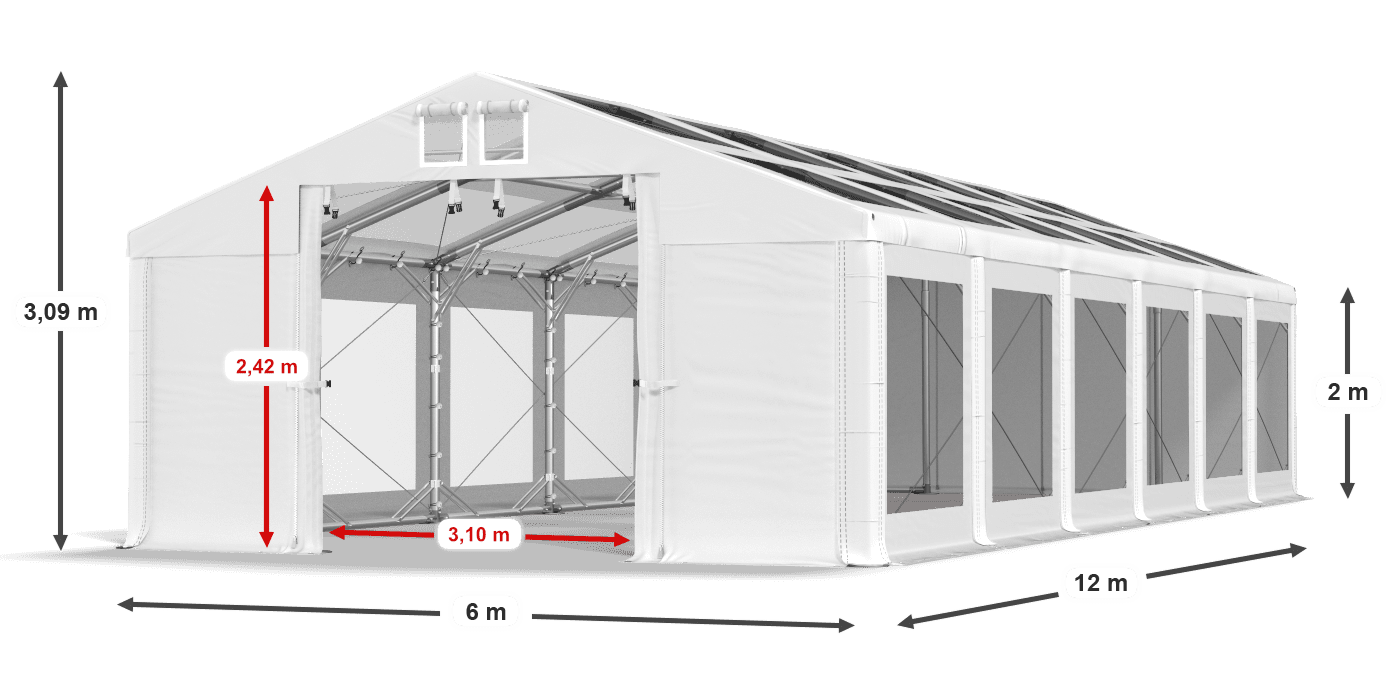 Wysokości w namiotach magazynowych oraz imprezowych mogą być szybko zmienione, a to dzięki modułowej konstrukcji, która pozwala na podniesienie namiotu o 0,5m lub o 1m. Najniższa możliwa wysokość ściany bocznej to 2m, a najwyższa to 4m.