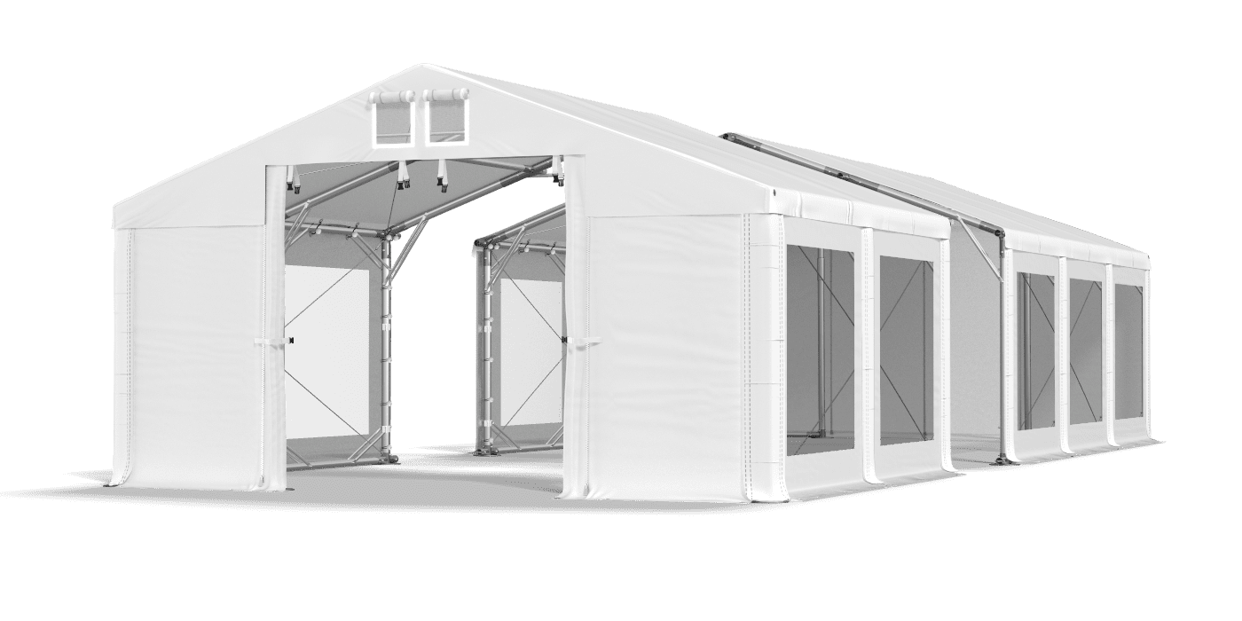 Wysokości w namiotach magazynowych oraz imprezowych mogą być szybko zmienione, a to dzięki modułowej konstrukcji, która pozwala na podniesienie namiotu o 0,5m lub o 1m. Najniższa możliwa wysokość ściany bocznej to 2m, a najwyższa to 4m.