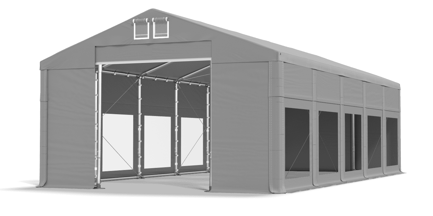 Wysokości w namiotach magazynowych oraz imprezowych mogą być szybko zmienione, a to dzięki modułowej konstrukcji, która pozwala na podniesienie namiotu o 0,5m lub o 1m. Najniższa możliwa wysokość ściany bocznej to 2m, a najwyższa to 4m.