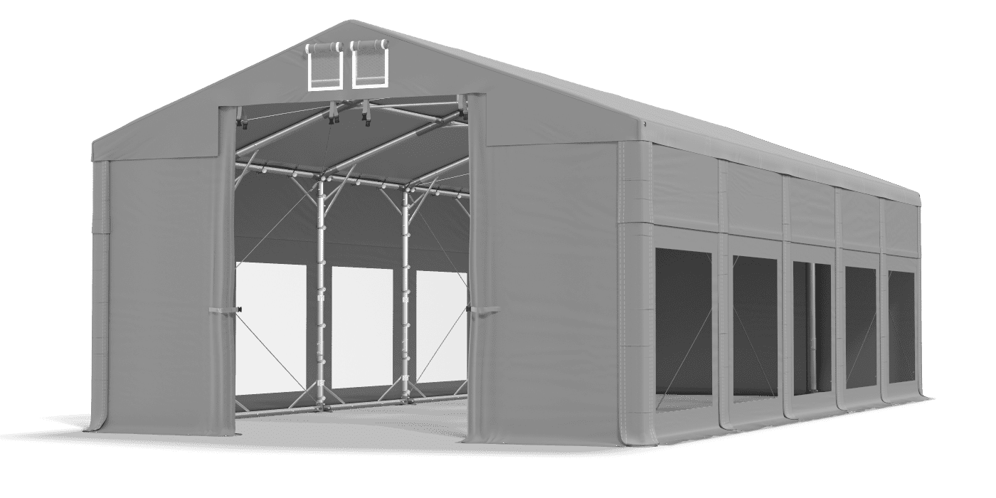Konstrukcja POLAR może być używana niezależnie od pory roku. Zbudowana jest z solidnych, stalowych elementów. Za wytrzymałość stelaża odpowiadają dodatkowe wzmocnienia, naciągi i zastrzały.