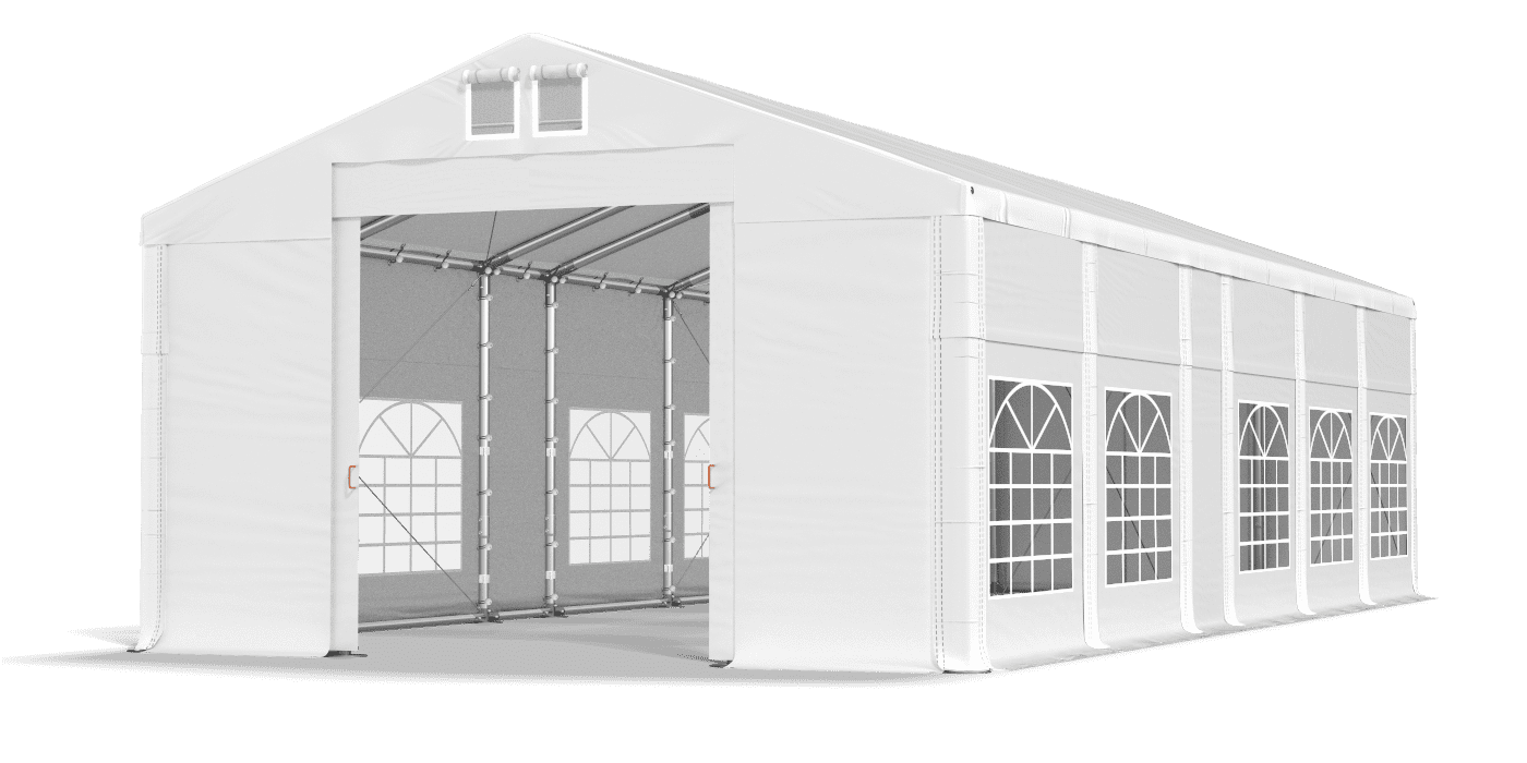 Wysokości w namiotach magazynowych oraz imprezowych mogą być szybko zmienione, a to dzięki modułowej konstrukcji, która pozwala na podniesienie namiotu o 0,5m lub o 1m. Najniższa możliwa wysokość ściany bocznej to 2m, a najwyższa to 4m.