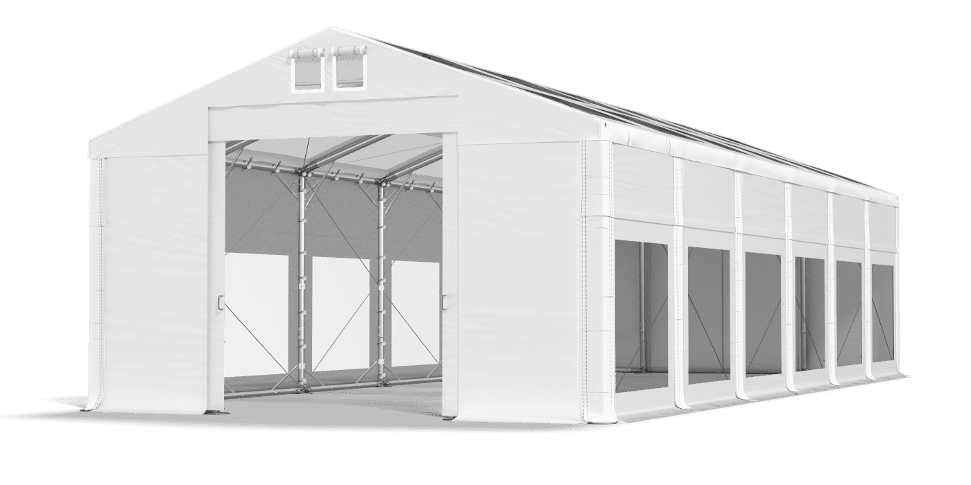 Wysokości w namiotach magazynowych oraz imprezowych mogą być szybko zmienione, a to dzięki modułowej konstrukcji, która pozwala na podniesienie namiotu o 0,5m lub o 1m. Najniższa możliwa wysokość ściany bocznej to 2m, a najwyższa to 4m.
