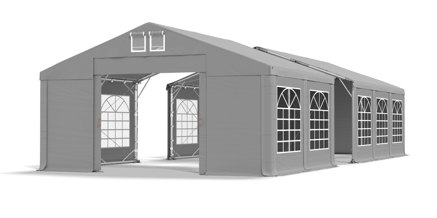 Namiot tego typu jest zbudowany z segmentowego dachu oraz ze ścianek wyposażonych w duże okna witrażowe. Jest to świetny wybór, gdy często organizujemy imprezy na różną ilość gości. Wtedy raz możemy ustawić mniejszy namiot lub dodać więcej segmentów i stworzyć większą przestrzeń.